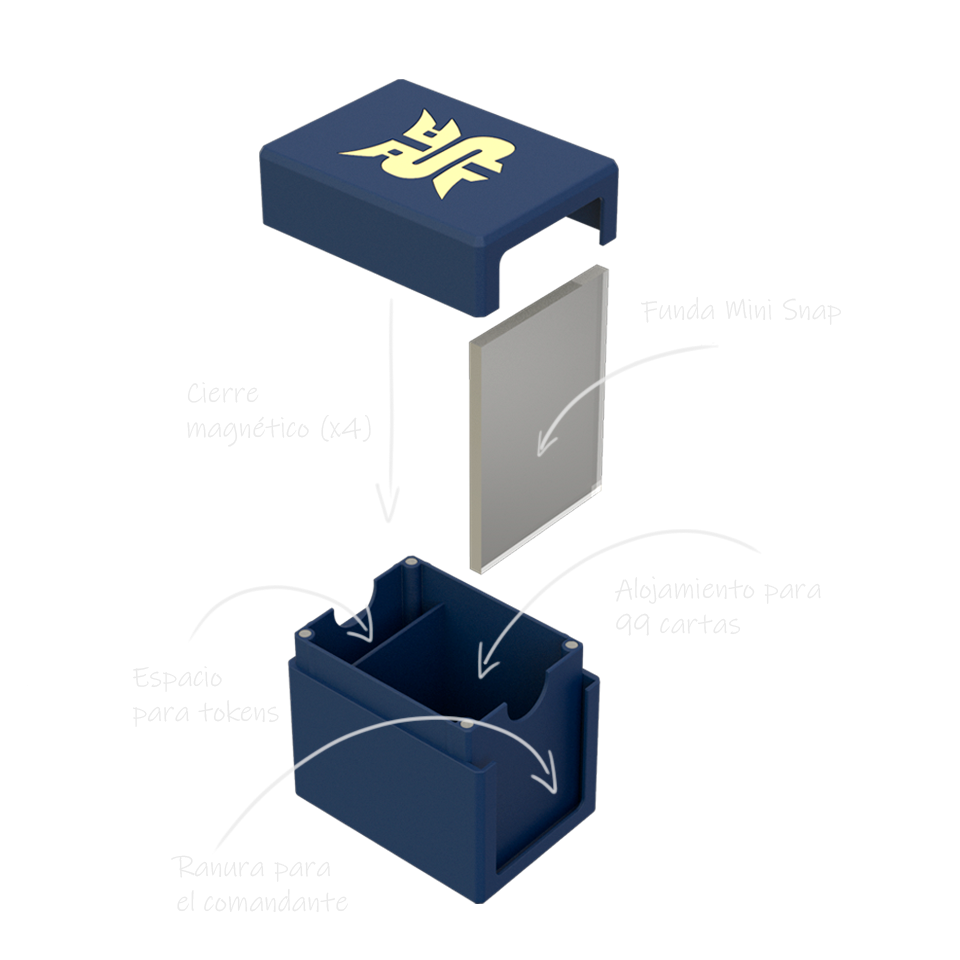 La Shield Deck es la solución definitiva para los entusiastas de Commander. Diseñada con precisión y fabricada con 3D Printer, esta caja garantiza una protección óptima y un almacenamiento eficiente para tu mazo.